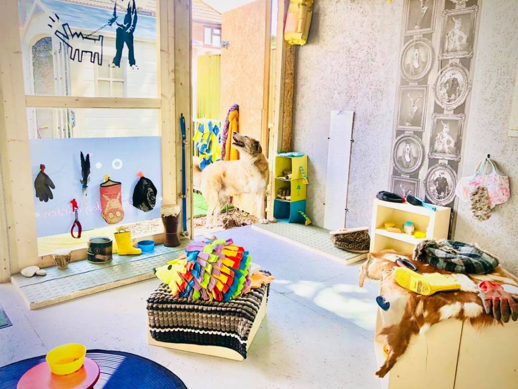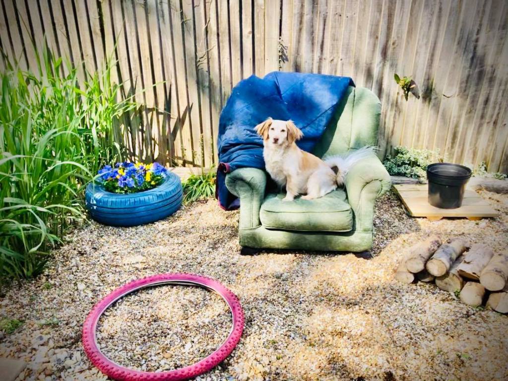 The Secret Dog Garden is designed entirely from the dog’s perspective and includes items for the whole sensory experience; sight, smell, sound, taste, touch, and most importantly in a secure area providing a feeling of safety.