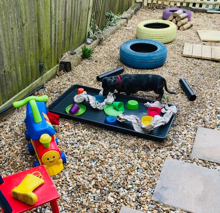 An enriched environment, such as The Secret Dog Garden, is a safe and secure area where your dog can explore at his/her own pace and make their own choices without direction or cues from us. It is their time, their experience, unique to them.